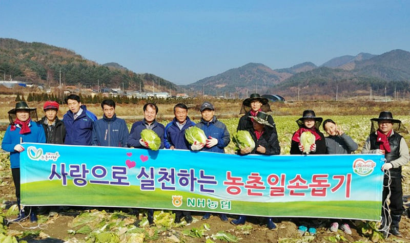 농협청주시지부(지부장 박종하)와 농협자산관리충북지사(지사장 이영용) 임직원 20여명은 29일 청주시 미원면 화원리 이병철 농가에서 수확철 일손 돕기를 위해 배추 수확 작업을 실시했다.