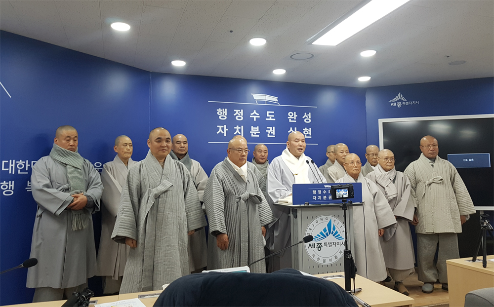 불교사암연합회와 세종시불교신행단체연합회는 7일 세종시청에서 기자회견을 열고 "전통문화 부정하고 종교편향 자행하는 세종시의회 일부 의원들에게 엄중히 경고한다"고 밝혔다.