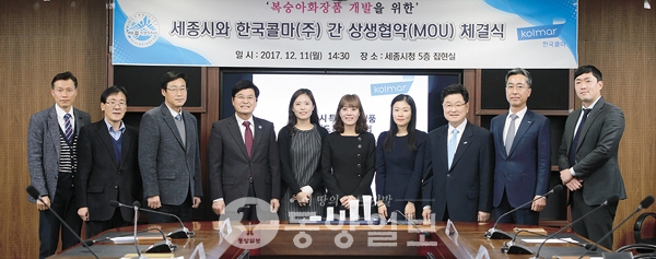 (세종=동양일보 신서희 기자) 세종시와 화장품 개발업체인 학국콜마가 11일 업무협약을 체결하고 조치원복숭아를 활용한 화장품 개발에 나선다.