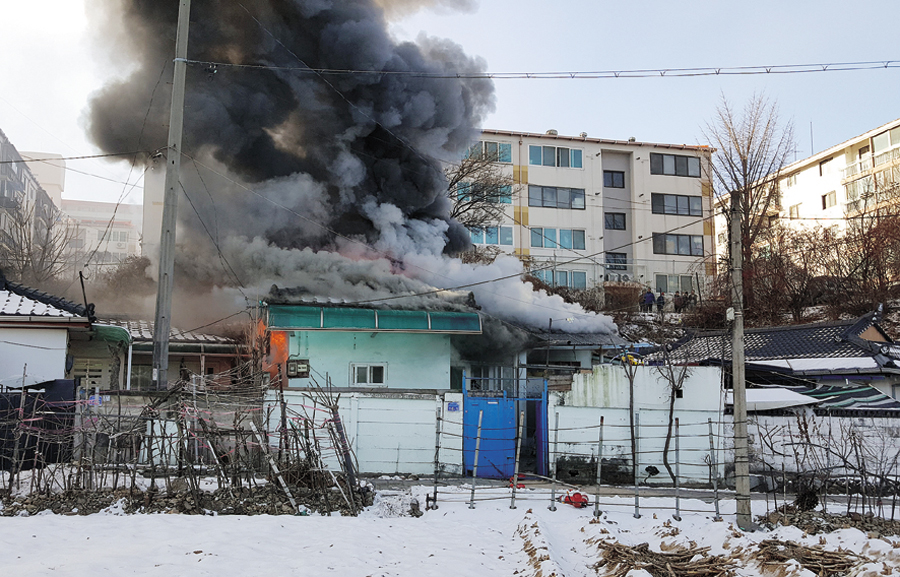 (제천=동양일보 장승주 기자) 혹한에 얼어붙은 보일러 배관을 녹이려다 불이 나 주택이 전소됐다.