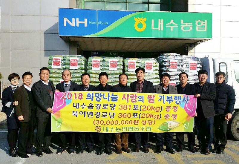 내수농협(조합장 변익수)은 20일 내수읍과 북이면 관내 103개소 경로당과 2개소 노인회에 3000만 원 상당의 20kg 쌀 741포를 전달했다. 동양일보TV 이정규 기자 siqjaka@dynews.co.kr 다른기사 보기 저작권자 © 동양일보 무단전재 및 재배포 금지 당신만 안 본 뉴스 한전 345KV 신평창~신원주 송전선로 건설사업, 제천·영월 결사반대 오송역세권 개발 다시 흔들리나…경찰, 오송역세권 조합장 배임 의혹 수사 홈플러스 동청주점 내년 1월 10일 폐점 확정...이젠 장보러 어디로? 충청내륙고속화도로 15년 만 완전 개통 대전 한화생명볼파크 전광판에 뜬 강백호 ‘웰컴’…한화 FA 계약 임박 제천 출신 최성진 중장 탄생, 7군단장 보임 충북도, 서울대병원 오송 유치 본격화 한전 345KV 신평창~신원주 송전선로 건설사업, 제천·영월 결사반대 댓글삭제 삭제한 댓글은 다시 복구할 수 없습니다. 그래도 삭제하시겠습니까? 비밀번호 닫기 기사 댓글 0 댓글 접기 댓글입력 권한이 없습니다. 댓글 내용입력 비회원 로그인 이름 비밀번호 댓글 내용입력 댓글쓰기 계정을 선택하시면 로그인·계정인증을 통해 댓글을 남기실 수 있습니다. 회원 로그인 이름 비밀번호 자동등록방지 로그인 옵션 창닫기 인기기사 한전 345KV 신평창~신원주 송전선로 건설사업, 제천·영월 결사반대 오송역세권 개발 다시 흔들리나…경찰, 오송역세권 조합장 배임 의혹 수사 홈플러스 동청주점 내년 1월 10일 폐점 확정...이젠 장보러 어디로? 충청내륙고속화도로 15년 만 완전 개통 대전 한화생명볼파크 전광판에 뜬 강백호 ‘웰컴’…한화 FA 계약 임박 제천 출신 최성진 중장 탄생, 7군단장 보임