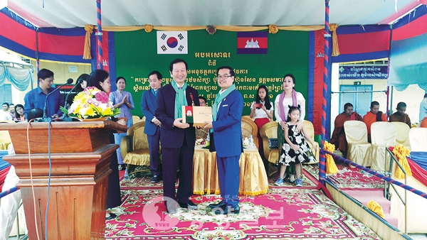 캄보디아 프레이벵주((Prey Veng Province) 니크로엉 초등학교에서 열린 정부 훈장 수여식에는 캄보디아 정부를 대표해 유크 버나(H.E. Youk Bunna) 행정부 차관 겸 왕립행정학교 총장이 국왕 명의의 훈장을 수여했다.