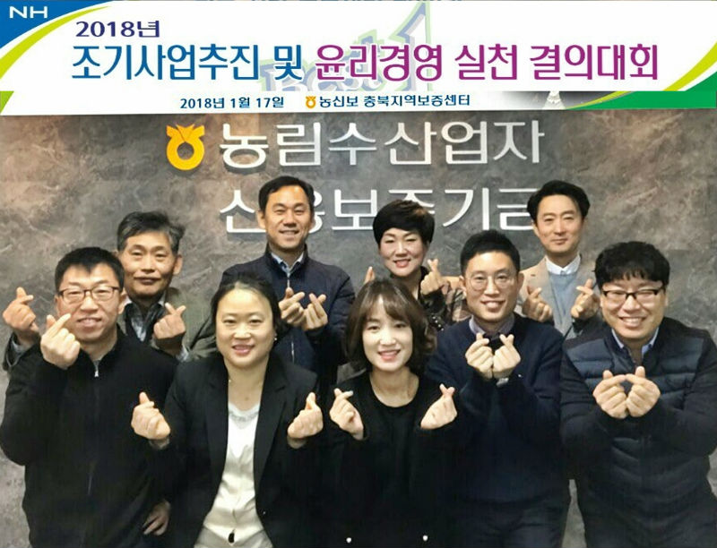(동양일보 이정규 기자) 농림수산업자신용보증기금(이하 농신보) 충북지역보증센터 임직원 10여명은 17일 회의실에서 사업추진 결의대회 및 윤리경영 실천 결의대회를 개최했다.