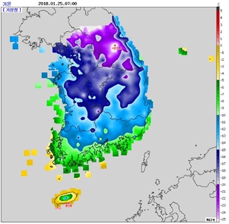 기상청은 26일 전국이 대체로 맑겠으나 전남 서해안에는 아침까지 눈이 조금 내리겠다고 예보했다. 중부와 일부 남부 내륙에는 아침기온이 영하 15도 이하로, 그 밖의 지역은 영하 10도로 떨어지고, 낮 최고기온도 영하권에 머무는 등 매우 추울 것으로 예상된다.