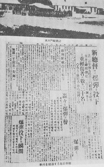 또한 남대문 역 앞에서 폭탄에 의해 부상당한 사람들의 사후처리에 대해 한 마디 부언하고자 합니다. 폭탄사건의 결과 부상당한 사람들 중 중상을 입었던 사람들은 앞서 말씀드린 바대로 육군군사령부의 소속 무라다(村田) 소장, 구보(久保) 만선 이사(滿鐵 理事), 미국인 해리슨부인, 구도(工藤) 조선신문 사원, 다케이(竹井) 경성일보 사원, 다치바나(橘) 오사카(大阪) 아사히(朝日)신문특파원, 야마구치(山口) 오사카마이니치(大阪每日)신문 특파원, 혼마치(本町)서장 고무다(小牟田)경시 등이었습니다. 이들 모두는 조선통치를 위해 생각지도 않은 상해를 입게 된 사람들로 이들에 대해서는 상당한 위로의 방안을 강구하도록 하라는 총독과 정부총감의 배려도 있었기 때문에, 우선 그 뜻을 받들어 당일부터 다음 날에 걸쳐 비서관이 사상자들을 위문했습니다.