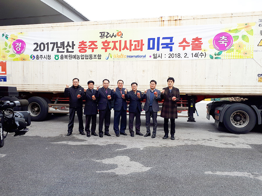 충주시는 지난 14일 충북원예농협 충주거점산지유통센터를 통해 후지사과 36t을 선적해 미국 수출 길에 올랐다고 20일 밝혔다.