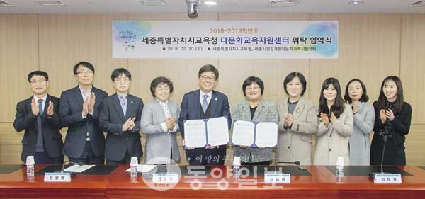 시교육청은 20일 세종시건강가정다문화가족지원센터와 ‘2018∼2019학년도 세종시교육청 다문화교육지원센터(이하 지원센터) 위탁 협약’을 체결했다.