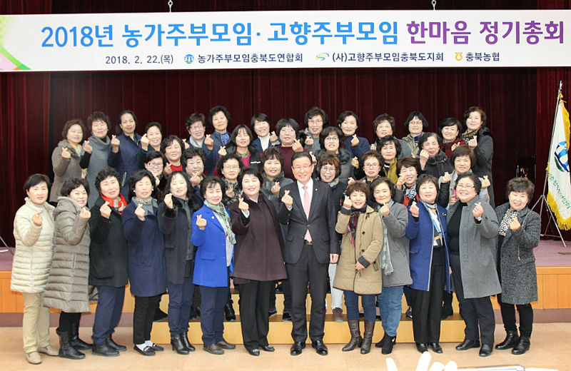 (동양일보 이정규 기자) 충북농협이 육성 지원하는 (사)고향주부모임충북도지회와 (사)농가주부모임충북도연합회가 22일 농협청주교육원에서 시군회장 및 읍면회장 120여명이 참석한 가운데 ‘2018년 합동 정기총회’를 개최했다.