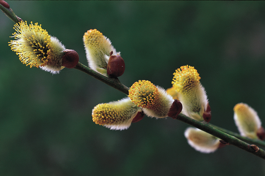 버드나무과. 갈잎 떨기나무. 높이 6m로 자란다. 잎은 어긋나고 원형이며, 끝이 뾰족하고 가장자리에 톱니가 있으며 처음에는 비단털이 난다. 꽃은 암수딴그루로 4월에 유이화서로 피는데, 수꽃은 수술이 2개이고 암꽃은 수술이 1개이다 열매는 삭과이고 6월에 익는다.