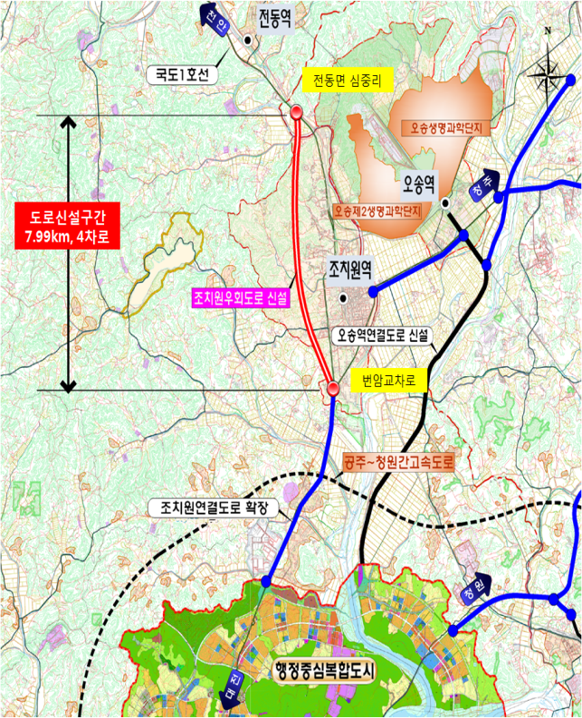 (동양일보 신서희 기자) 행정중심복합도시건설청이 ‘조치원우회 도로공사(이하 조치원우회도로)’ 및 ‘회덕나들목(IC)연결 도로공사(이하 회덕나들목(IC)연결도로)’의 기본 및 실시설계용역을 본격적으로 추진한다.