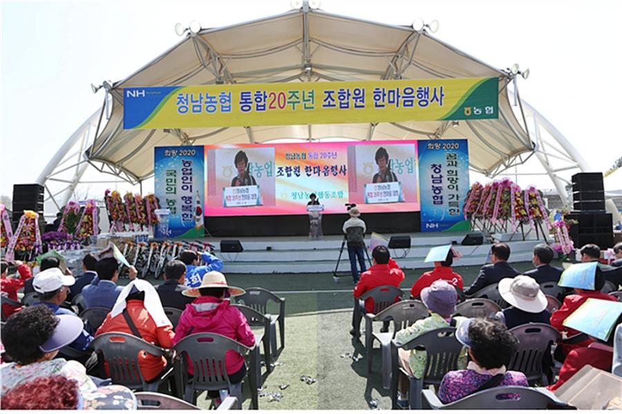 (동양일보 이정규 기자) 청남농협은 21일 청주 문의체육공원에서 조합원 2000여명이 참석한 가운데 통합 20주년 조합원 한마음 행사를 실시했다.