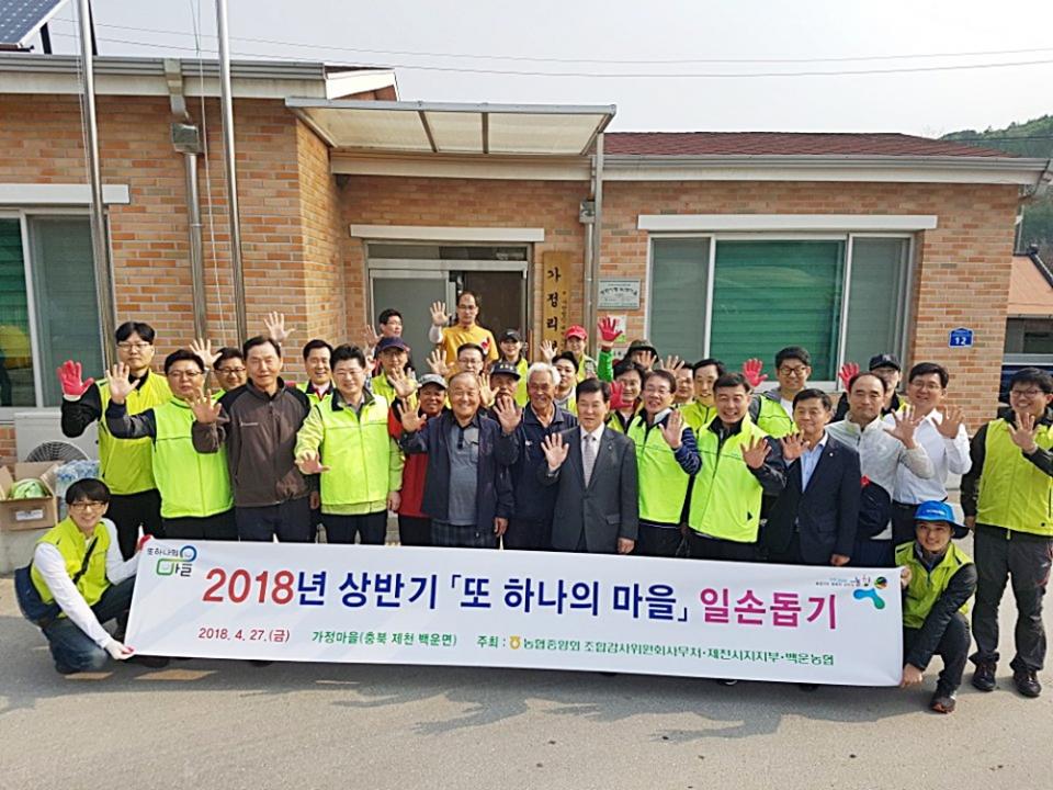 (동양일보 이정규 기자) 농협중앙회 조합감사위원회(위원장 채원봉)와 충북검사국 임직원 30여명은 본격적인 영농철을 맞아 2016년 ‘또 하나의 마을 만들기’운동으로 인연을 맺은 충북 제천시 백운면 가정마을을 방문해 사과나무 꽃솎기 작업과 고추모종 심기 등 농촌일손돕기를 실시했다.