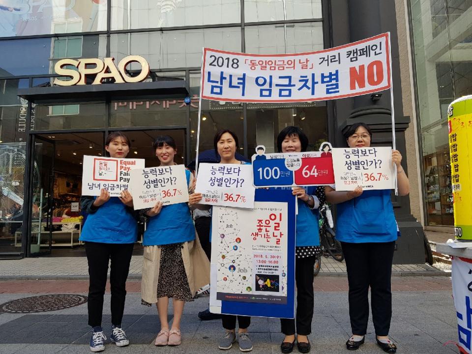 이날 청주YWCA는 거리 캠페인과 함께 동일임금의 날 지정을 위한 서명운동도 펼쳤다.