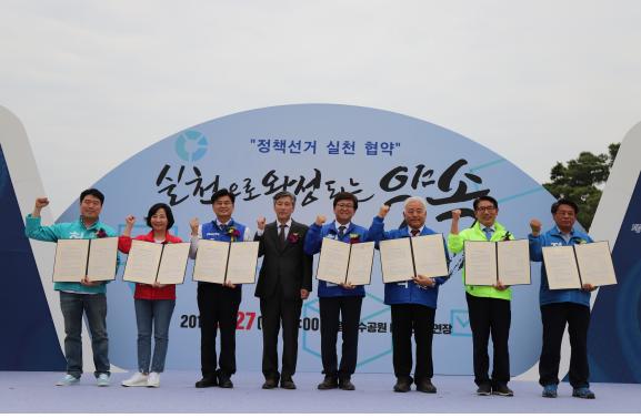 세종시선거관리위원회는 27일 세종호수공원에서 정책선거실천 협약식을 개최했다.