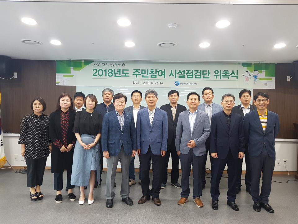세종시교육청은 지난 27일 본청 4층 대회의실에서 주민참여 시설점검단 위원 20명에게 위촉장을 수여하고 신축공사의 전반에 걸친 감리업무의 적정 이행여부를 점검·감시하기 위해 공사현장을 직접 방문·점검할 수 있는 권한을 부여했다.