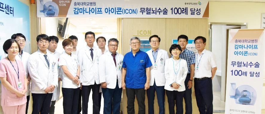 충북대병원의 감마나이프 아이콘 무혈 뇌수술 100례 달성은 지난 1월 12일 충북지역 최초로 감마나이프 아이콘 센터를 개소하고 최첨단 무혈 뇌수술을 시행해 온지 7개월 만이다.