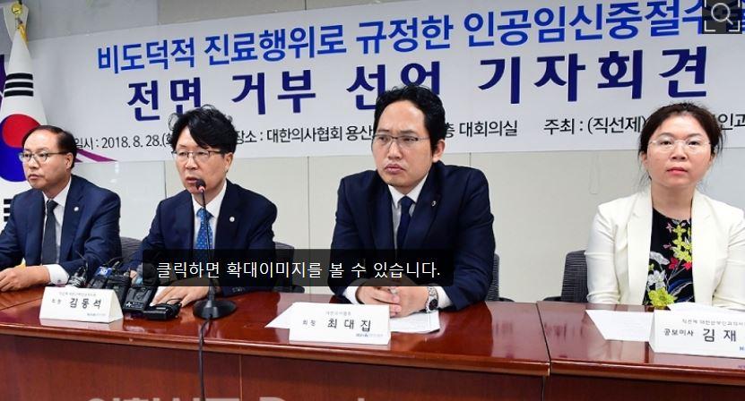 이날 기자회견에 참석한 최대집 대한의사협회장도 산부인과의회의 낙태 거부 선언을 지지했다.