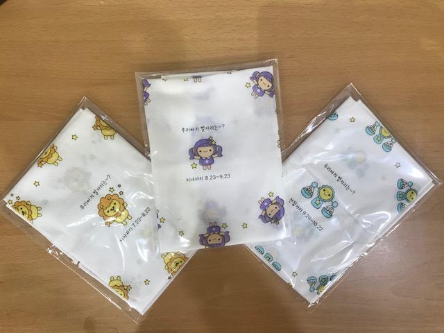 가제손수건은 손수건과 스카프 등으로 두루 활용할 수 있는 필수 육아물품으로, 여기에 예쁜 별자리를 새겨 새 생명의 탄생을 축하하는 의미를 담았다.