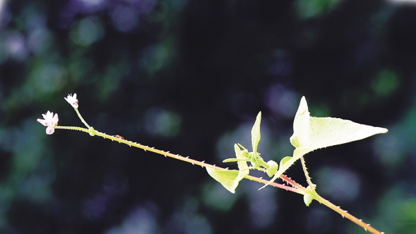 마디풀과. 한해살이 덩굴풀. 산과 들에서 길이 1~2m 자란다. 줄기와 잎자루에 갈고리 같은 가시가 있다. 잎은 어긋나고 긴 삼각형이다. 꽃은 7~8월에 피고 가지 끝에 모여 달린다. 꽃잎은 없으며 연홍색 꽃받침이 꽃처럼 보인다. 열매는 수과이고 10월에 검게 익는다.