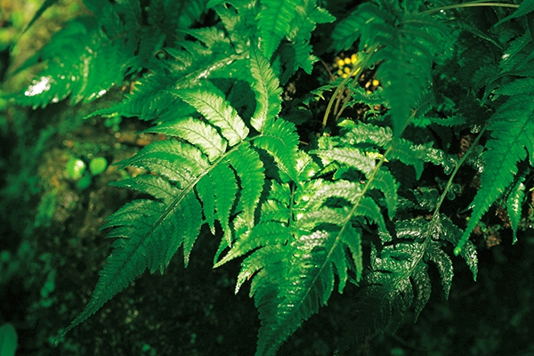 우드풀과. 늘푸른 여러해살이풀. 산에서 자라며 잎이 드물게 난다. 잎은 길이 20~30cm로 넓은 피침형이고 1회 깃꼴로 갈라지며, 양면에 희털이 드문드문 있고, 종이질이고 끝이 꼬리처럼 길게 뾰족하다. 포자낭군은 6~9월에 중륵 가까이에 붙으며 포막은 갈고리 모양이다.