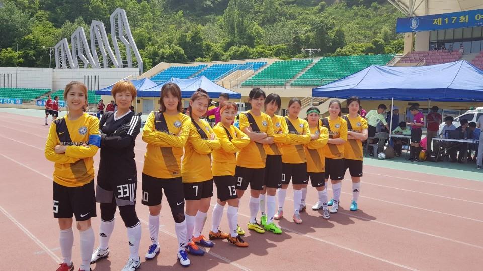 천안여성축단은 20~60대 여성들로 구성된 생활축구동호회로 지난 2015년 3월 정식 창단됐다. 매주 수요일 저녁 토·일 새벽 세 차례 훈련을 하거나 남자팀과 시합을 벌인다. 2014년부터 공을 찼지만 인원이 6~7명에 불과해 창단하지 못하고 1년 여 동안 남자팀에 섞여 운동을 했다.힘이 없어서 남자들과 몸싸움하다가 나가떨어지기가 일쑤였지만 체력만큼은 좋아졌다고 했다. 그러다 그해 여름 경기 욕심에 덜컥 전국대회 참가 신청서를 냈다. 모자라는 인원은 동네 아줌마들을 꼬드겨 11명의 선수를 억지로 만들었다.