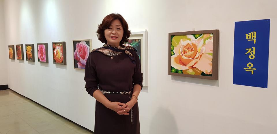 이번 초대전에서는 백 작가의 예술혼이 담겨있고, 장미의 꽃말인 사랑과 연의 꽃말인 행복이라는 심상이 녹아 있는 그림 총 30여점이 전시된다. 영동 이종억 기자