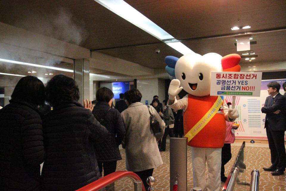 (동양일보 조석준 기자) 충북도선거관리위원회와 농협충북지역본부는 지난 8일 농업인 신년업무보고회에 참석한 농업인들을 대상으로 ‘깨끗하고 아름다운 선거는 튼튼한 우리조합 발전의 힘’이라는 주제로 전국동시조합장선거에 대한 공명선거 캠페인을 실시했다.(사진)
