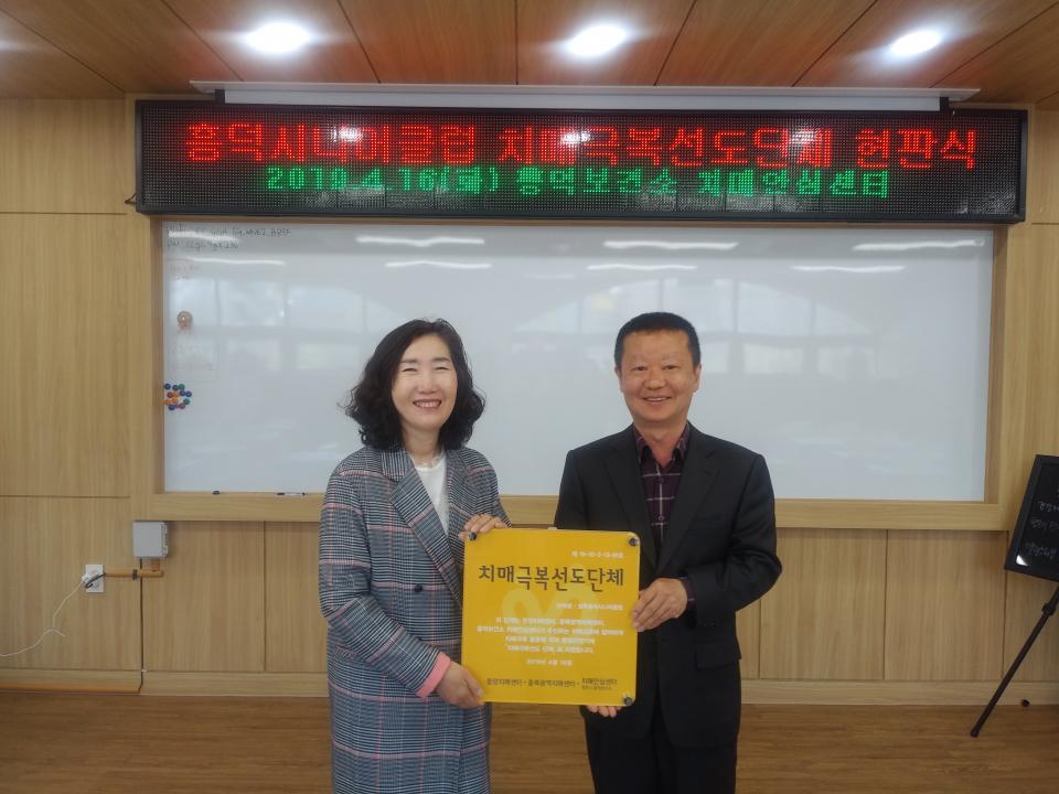 (동양일보 한종수 기자) 청주흥덕보건소는 16일 치매안심센터에서 치매극복 선도단체로 흥덕시니어클럽을 지정하고 현판식을 가졌다. 동양일보TV 한종수 h3325@dynews.co.kr 다른기사 보기 저작권자 © 동양일보 무단전재 및 재배포 금지 당신만 안 본 뉴스 한전 345KV 신평창~신원주 송전선로 건설사업, 제천·영월 결사반대 오송역세권 개발 다시 흔들리나…경찰, 오송역세권 조합장 배임 의혹 수사 홈플러스 동청주점 내년 1월 10일 폐점 확정...이젠 장보러 어디로? 충청내륙고속화도로 15년 만 완전 개통 대전 한화생명볼파크 전광판에 뜬 강백호 ‘웰컴’…한화 FA 계약 임박 제천 출신 최성진 중장 탄생, 7군단장 보임 충북도, 서울대병원 오송 유치 본격화 한전 345KV 신평창~신원주 송전선로 건설사업, 제천·영월 결사반대 댓글삭제 삭제한 댓글은 다시 복구할 수 없습니다. 그래도 삭제하시겠습니까? 비밀번호 닫기 기사 댓글 0 댓글 접기 댓글입력 권한이 없습니다. 댓글 내용입력 비회원 로그인 이름 비밀번호 댓글 내용입력 댓글쓰기 계정을 선택하시면 로그인·계정인증을 통해 댓글을 남기실 수 있습니다. 회원 로그인 이름 비밀번호 자동등록방지 로그인 옵션 창닫기 인기기사 한전 345KV 신평창~신원주 송전선로 건설사업, 제천·영월 결사반대 오송역세권 개발 다시 흔들리나…경찰, 오송역세권 조합장 배임 의혹 수사 홈플러스 동청주점 내년 1월 10일 폐점 확정...이젠 장보러 어디로? 충청내륙고속화도로 15년 만 완전 개통 대전 한화생명볼파크 전광판에 뜬 강백호 ‘웰컴’…한화 FA 계약 임박 제천 출신 최성진 중장 탄생, 7군단장 보임