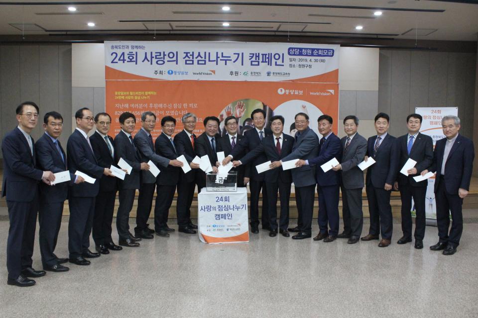 동양일보와 월드비전이 공동 주최한 ‘24회 사랑의 점심나누기 캠페인’ 순회모금 행사가 30일 청주 청원구청에서 열려 20일간의 대장정을 마무리했다.