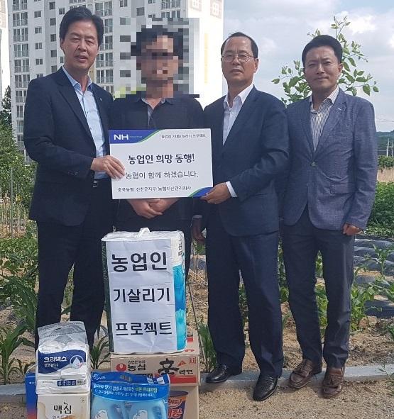 농협자산관리 충북지사는 13일 농협진천군지부와 함께 최근 신용회복에 성공한 진천의 한 농업인 농가를 찾아 생필품 등을 전달하고 향후 지원방안을 상담했다.