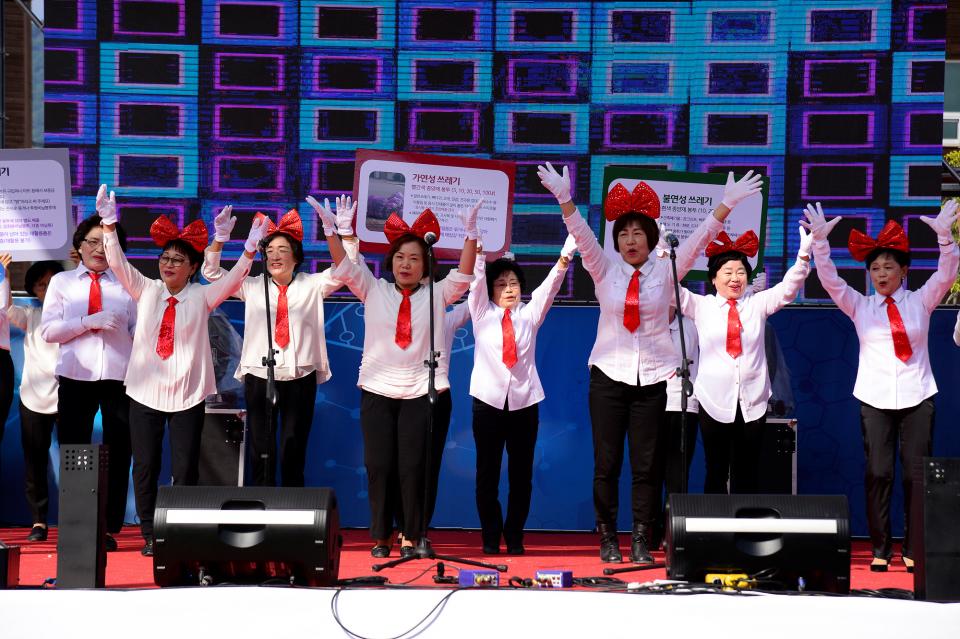 매년 볼거리와 즐길 거리, 경품의 횡재까지 안겨주는 환경노래개사경연대회는 출전팀에서 펼치는 다채로운 퍼포먼스가 펼쳐진다. 제천 장승주 기자