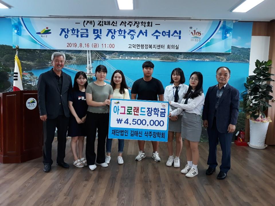 이 장학금은 지역사회의 상생과 인재육성을 위해 성적이 우수하고 장래가 촉망되는 지역 거주 학생에게 도움을 주기 위한 것으로, 고덕면에 관내 대학생 3명에게 각각 100만원, 고등학생 3명에게 각각 50만원이 전달됐다.예산 서경석 기자