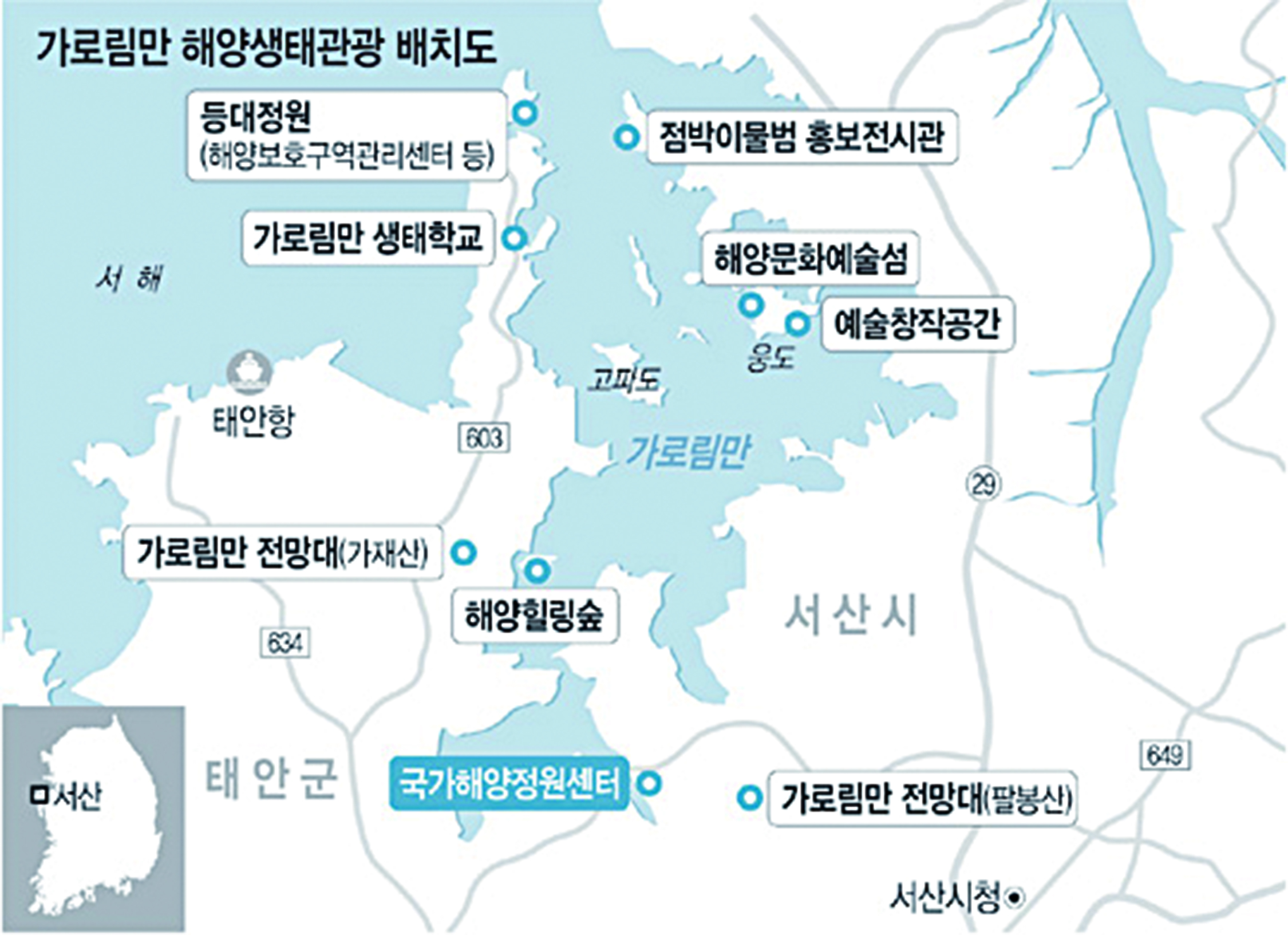 충남도는 세계 5대 갯벌 가운데 하나인 서해 갯벌 중 보존상태가 가장 양호한 가로림만을 ‘국가해양정원’으로 조성한다는 야심 찬 계획도 추진하고 있다. 최근 사업 타당성 조사연구와 기본계획 수립을 마친 충남도는 정부의 사업 예비타당성 조사에서도 자신감을 표하고 있다.