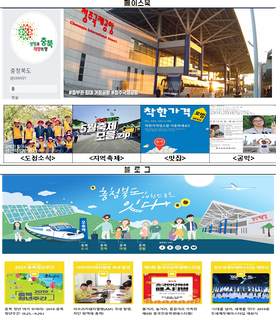 SNS서포터즈가 직접 도정 현장을 취재하여 생생한 콘텐츠를 발굴하고 피부에 와 닿는 공감형 콘텐츠를 제공했다. 파워블로거 팸투어 개최, 2019충주세계무예마스터십 개폐회식 라이브 송출, 타시도와의 SNS 교차홍보, 참여형 SNS 이벤트 등을 통하여 도 채널 활성화와 홍보를 위해 주력했다.