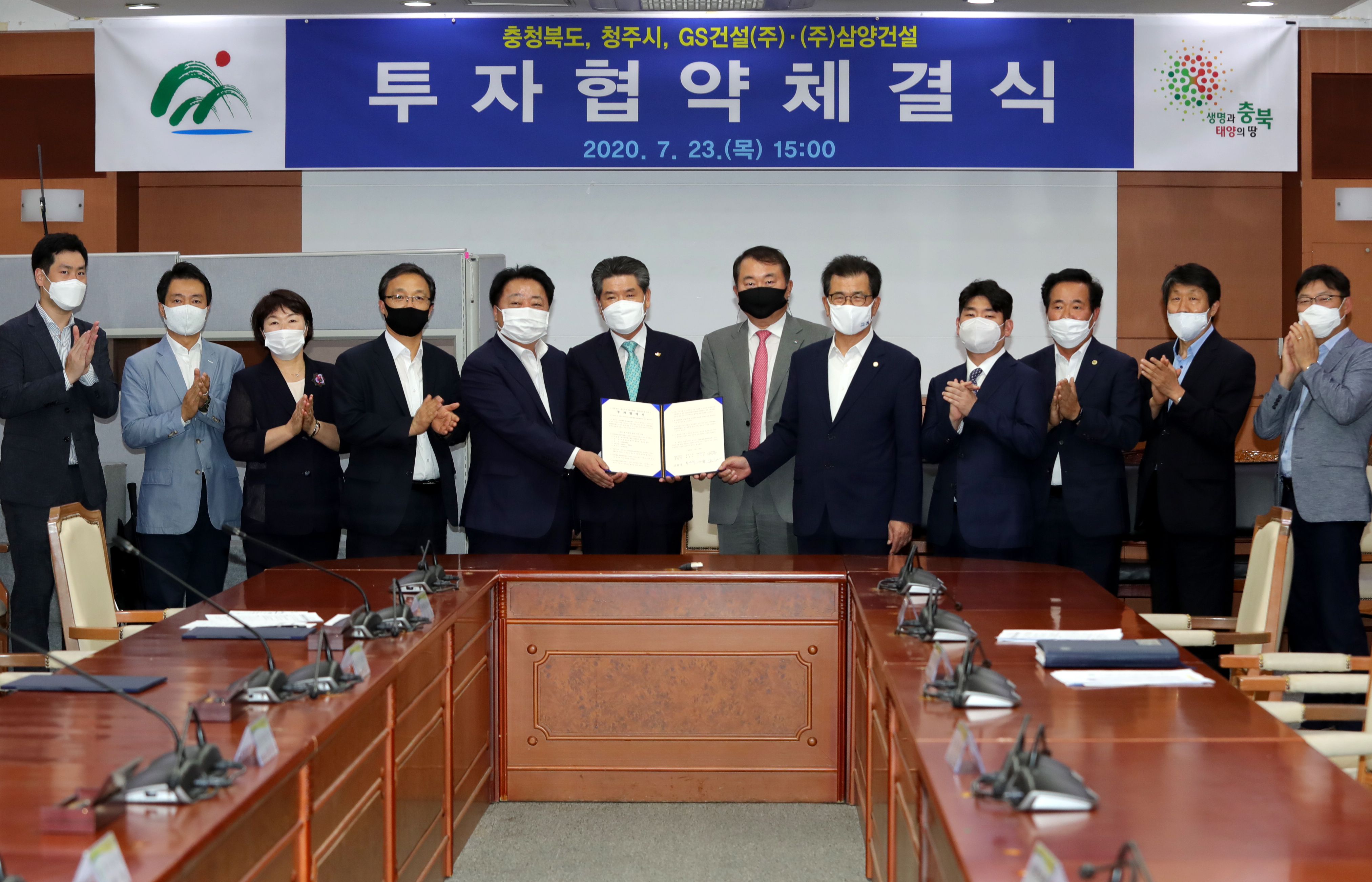 이시종 충북지사와 한범덕 청주시장, GS건설 이상기 인프라부문 대표이사, 삼양건설 윤현우 대표이사 등 관계자 10여명이 협약식에 참석했다.