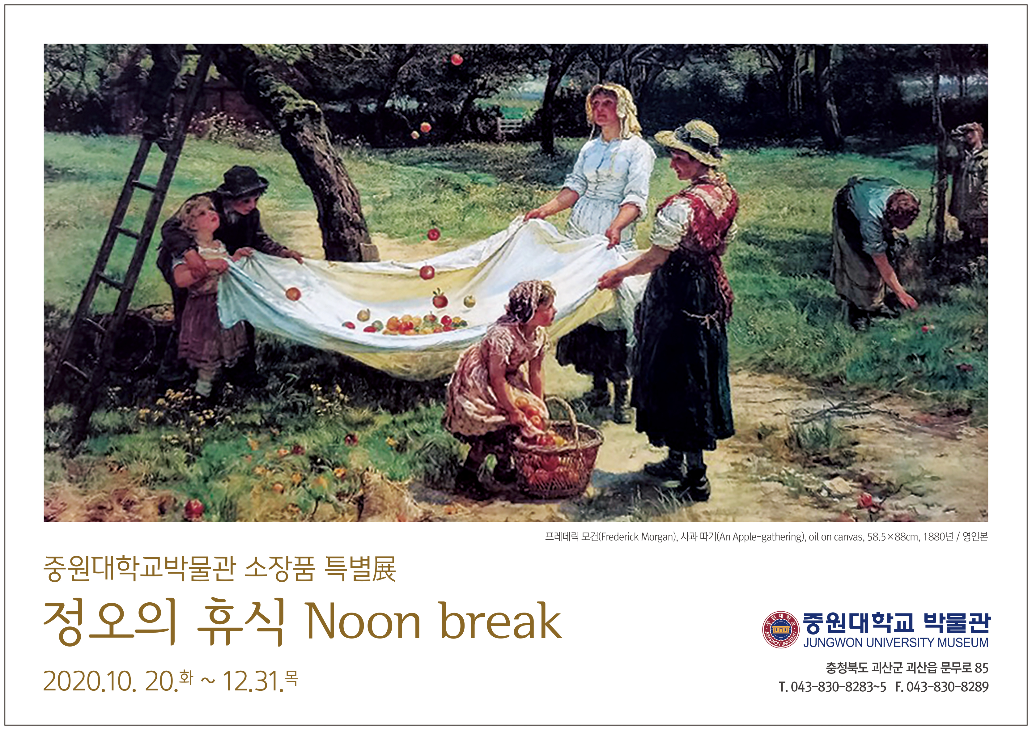 오는 12월 31일까지 중원대 박물관에서 열리는 '정오의 휴식'이라는 제목의 특별전은 미공개 작품과 박물관 소장품 중 회화, 서예 및 자수 작품 등으로 구성됐다.