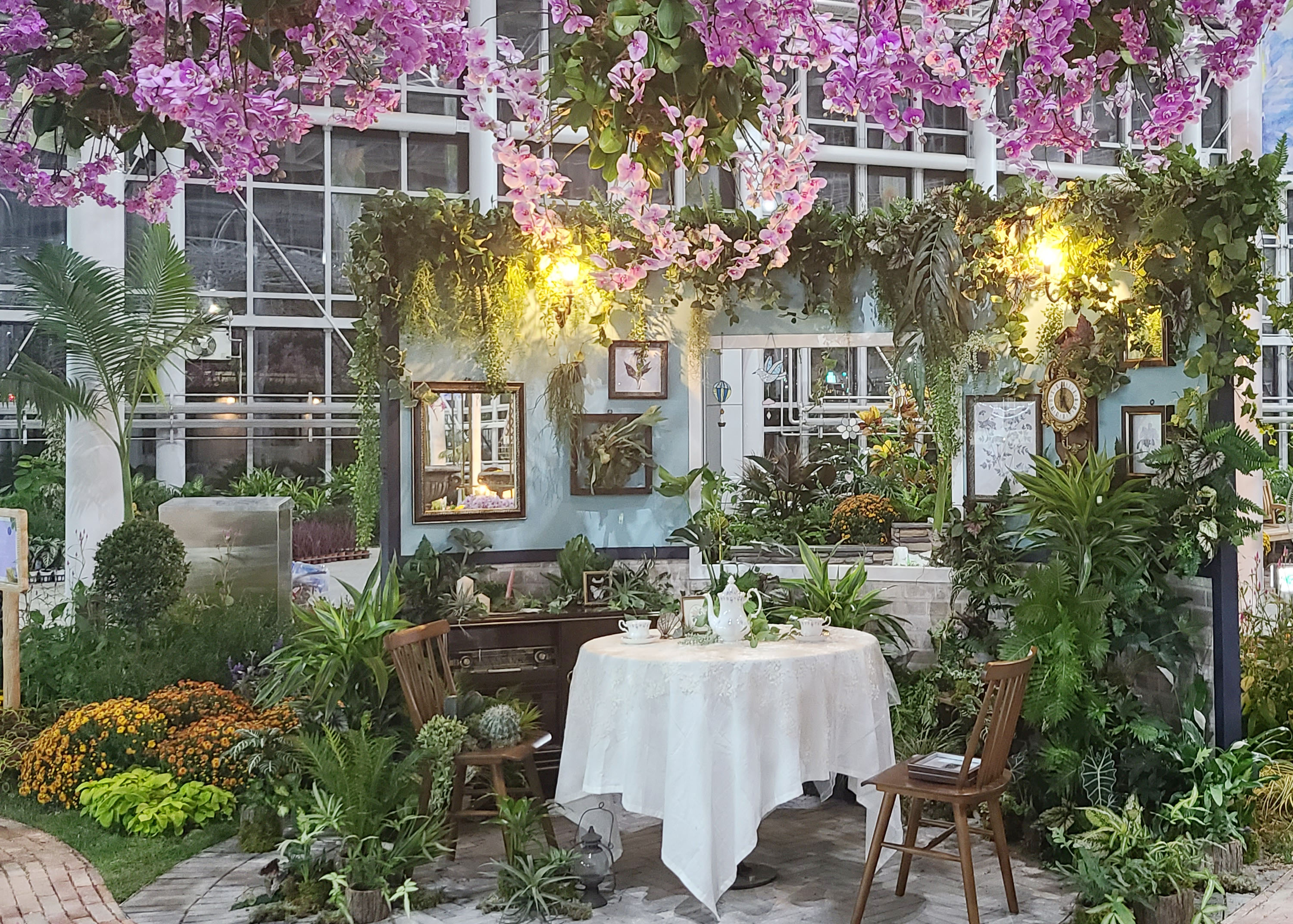 기획전시는 국내 최대 규모(축구장 1.5배 1ha)를 자랑하는 사계절전시온실(특별전시온실)에서 ‘정원, 행복을 품다’ 주제로 행잉가든, 대형 아이스크림 화단 등 40종 2만여 본의 식물을 전시한 테마정원을 조성하여 청년층에게 공감과 중·장년층에게 추억을 선사한다.
