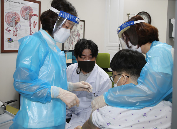충북의 1호 접종자인 청주 흥덕구 재활용양병원 이지용 원장은 "1호 접종을 맞았다는 숫자적인 의미보다는 오늘부터 우리 모두가 코로나19로부터 벗어날 수 있는 첫걸음을 떼었다는 것이 더 의미 있는 것 같다"며 "다만 제가 다른 사람들보다 조금 더 일찍 맞아서 감사하게 생각하고 한편으로는 죄송스럽게 생각되기도 한다"고 밝혔다. 이어 이 원장은 요양병원 접종계획에 대해 "총 대상자는 170여명 정도인데 오늘 하루 100여명 정도 맞고 주말이 지나고 3월 2일에 나머지 70여명 정도가 접종될 예정"이라고 말했다. 엄재천 기자