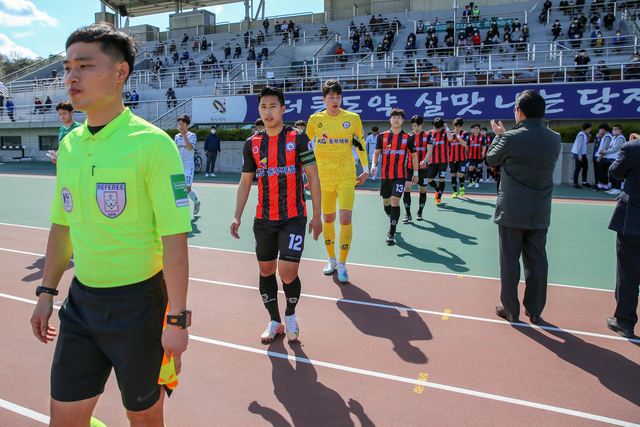 지역내 코로나 확산으로 홈 첫경기가 원정경기로 대체되면서 불발되었던 홈 개막 첫 경기에서 당진시민축구단은 기존 전술을 마음껏 발휘하는 멋진 경기를 선보였다.