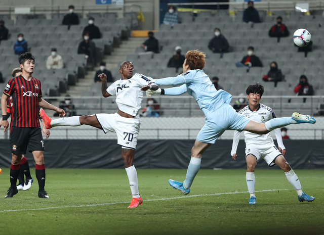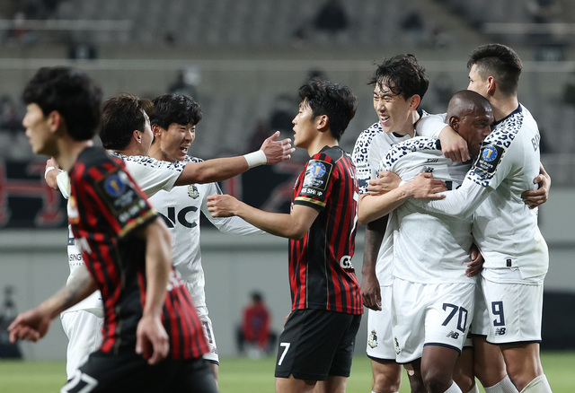 이번 FA 3라운드에선 이변이 속출했다. 서울월드컵경기장에서 열린 첫 ‘서울 더비’에선 K리그2 서울 이랜드가 K리그1 FC서울을 1-0으로 누르고 16강에 올랐다. 역시 K리그1 인천 유나이티드는 K리그2 FC안양과의 홈경기에서 0-3으로 완패했고, 광주FC는 K3리그 부산교통공사와 연장까지 2-2로 비긴 뒤 승부차기에서 3-5로 져 탈락했다. K리그1 최하위 수원도 K리그2 전남 드래곤즈와 1-1로 맞선 후 승부차기에서 4-5로 무릎을 꿇었다. K리그1 승격팀 제주 유나이티드는 지난 시즌까지 1부에서 뛴 2부팀 김천 상무에 0-1로 졌다. 이도근 기자 nulha@dynews.co.kr