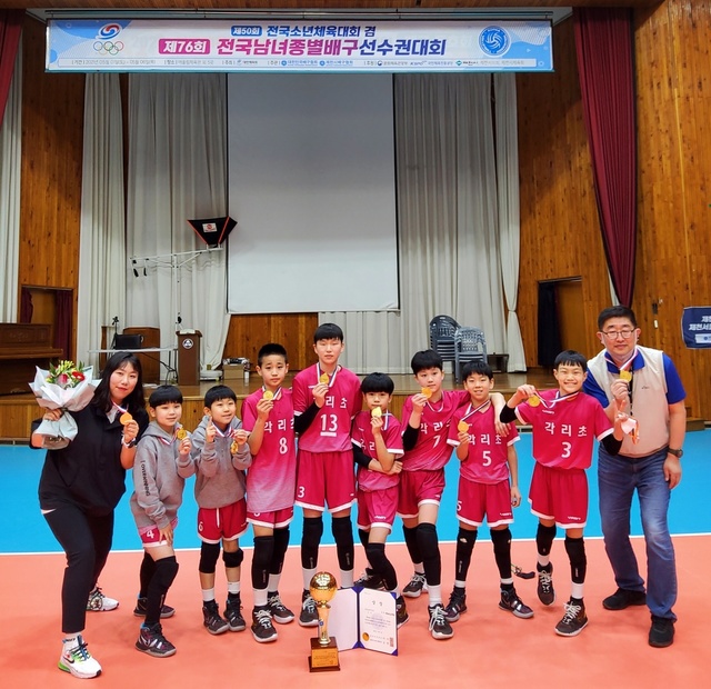 각리초는 6일 제천여중체육관에서 열린 50회 전국소년체육대회 겸 76회 전국남녀종별배구선수권대회 남초부(13세 이하) 결승전서 초등배구의 강자 서울 면목초를 세트스코어 2-0(25-20, 25-16)으로 완파하고 소년체전 금메달과 종별선수권 동반 우승의 쾌거를 달성했다.