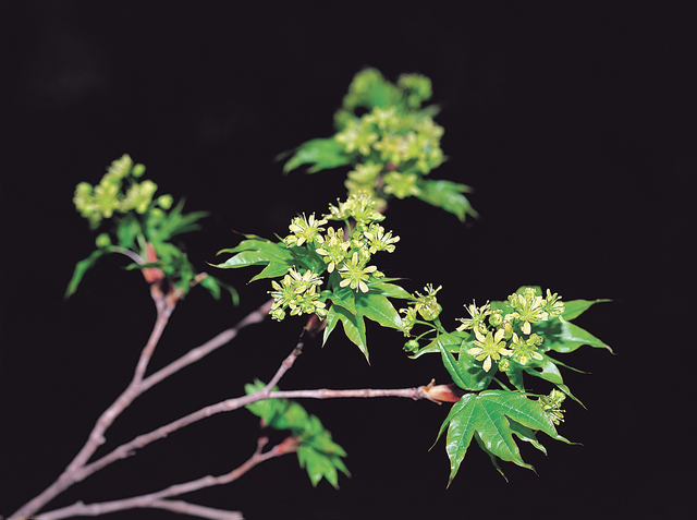 [동양일보]고로쇠나무 단풍나무과. 갈잎큰키나무. 높이 20m 정도 자란다. 잎은 손바닥처럼 얕게 갈라진다. 꽃은 암수 한그루로 4~5월에 연한 황록색 원추화서로 달린다. 열매는 시과이고 9~10월에 익는다. 식용. 약용.