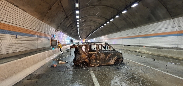 경찰과 소방당국에 따르면 이날 타이어 펑크로 인해 터널 안 커브길 1차로에 정차 중이던 A(여‧48)씨의 승용차를 B씨가 몰던 1t 화물차가 들이 받았다. 사고 충격으로 승용차에서 화재가 발생해 터널 안이 연기로 뒤덮였고, 제한된 시야로 C씨가 몰던 승용차가 화물차를 잇달아 들이받았다.