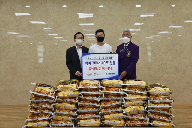 [동양일보 이도근 기자]청주무심로타리클럽(회장 이상준)과 청년징검다리(회장 장관식)는 13일 충북도체육회를 찾아 도내 학생선수들을 위한 사랑의 쌀 20㎏ 40포(300만원 상당)를 전달했다.