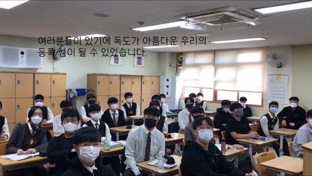 또 18일~22일 학급별로 ‘독도지킴이’인 독도경비대에 감사의 마음을 전하는 학생들의 글 등을 편집해 5분 내외의 영상으로 만들었다.
