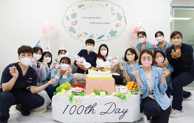 세종충남대병원 신생아중환자실 의료진들은 병원에서 100일을 맞는 쌍둥이에게 건강하게 성장하기를 바라는 마음을 담아 조촐한 파티를 마련해줬다.