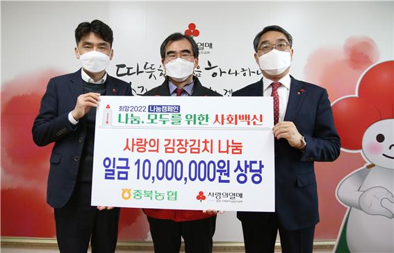 [동양일보 김미나 기자]충북농협(본부장 염기동)은 6일 충북사회복지모금회(회장 노영수)에 1000만원 상당의 김장김치 2630kg(263박스)를 전달했다.