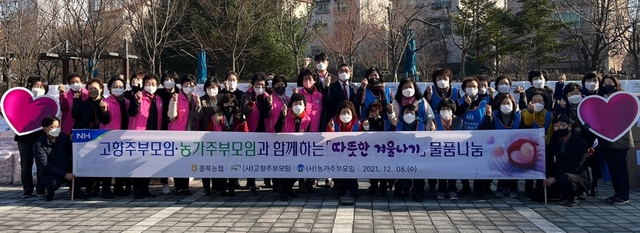 [동양일보 조석준 기자]농협충북본부와 농협 임·직원 사회봉사기관인 우리농업기키기운동본부(충북본부장 김영준), 농협육성 여성단체인 고향주부모임(충북도회장 최순옥), 농가주부모임(충북연합회장 이상정)은 8일 지역본부 앞마당에서 ‘따뜻한 겨울나기 물품나눔’행사를 가졌다.(사진)