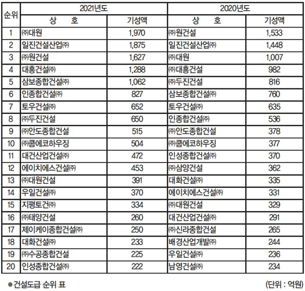 건협 충북도회 관계자는 “전년도에 비해 증액된 SOC 예산과 민간건축의 강세가 이어져 전체 계약액과 기성액이 증가한 것으로 보인다”면서 “실적신고 결과만 보면 건설업계가 호황인 것처럼 보이지만 원자재 가격의 급등과 중대재해처벌법 시행 등으로 그 어느 때보다 위기”라고 말했다.