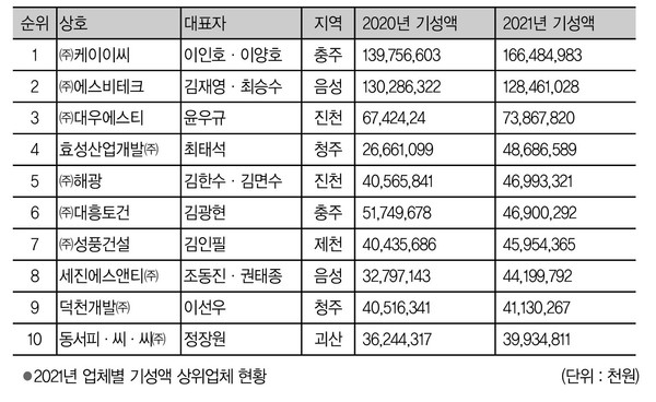 [동양일보 조석준 기자]대한전문건설협회 충청북도회(회장 우종찬)는 2021년도 도내 전문건설업 실적신고 접수결과를 발표했다.